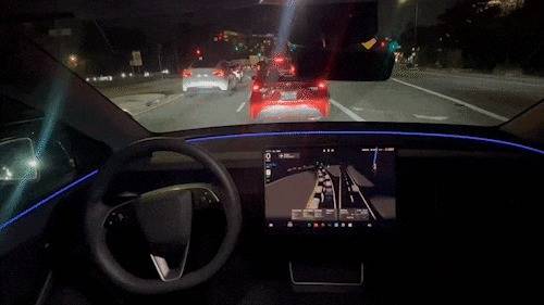 FSD创造了一幅极具未来感的画面。