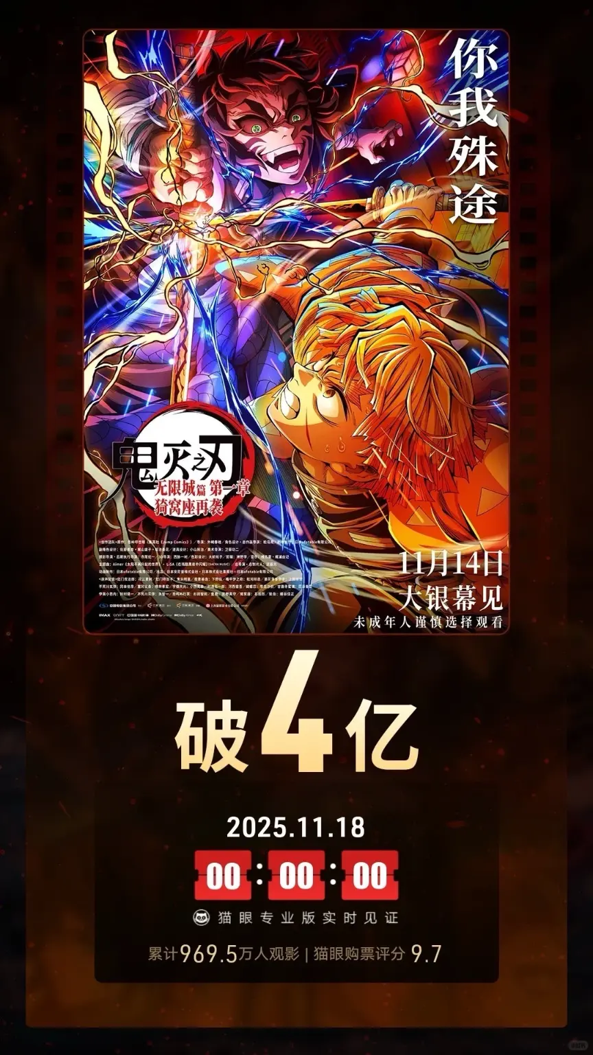 之后大家也看到了,上映7天票房破4亿,《鬼灭之刃:无限城篇 第一章·猗窝座再袭》有望冲击国内院线日本电影票房冠军。人气更是没得说,粉丝之间的二创、应援多得数不过来,快闪店和联名也几乎同一时间跟上……
