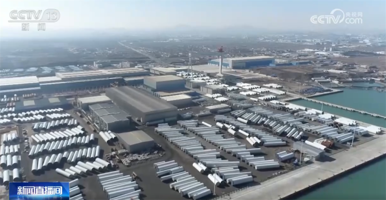 在山东蓬莱这家海洋重工企业的生产基地,记者看到,巨型风电桩基从厂区货场直接运抵码头装船出口。这种无缝衔接的“码头直装”新模式,让产品不再受限于公路运输瓶颈。