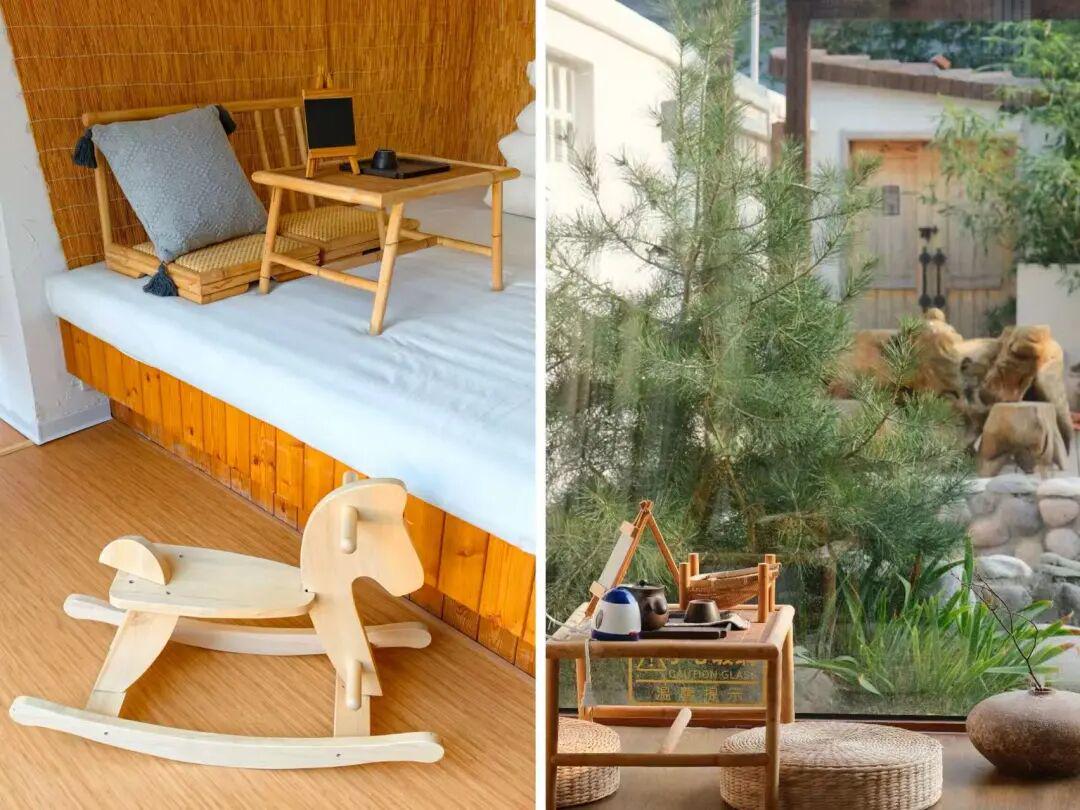 在 潞城镇的安寓嬉舍可以返璞归真,享受田园牧歌的宁静时光,民宿内有丰富的游乐设施,深受亲子家庭的欢迎。